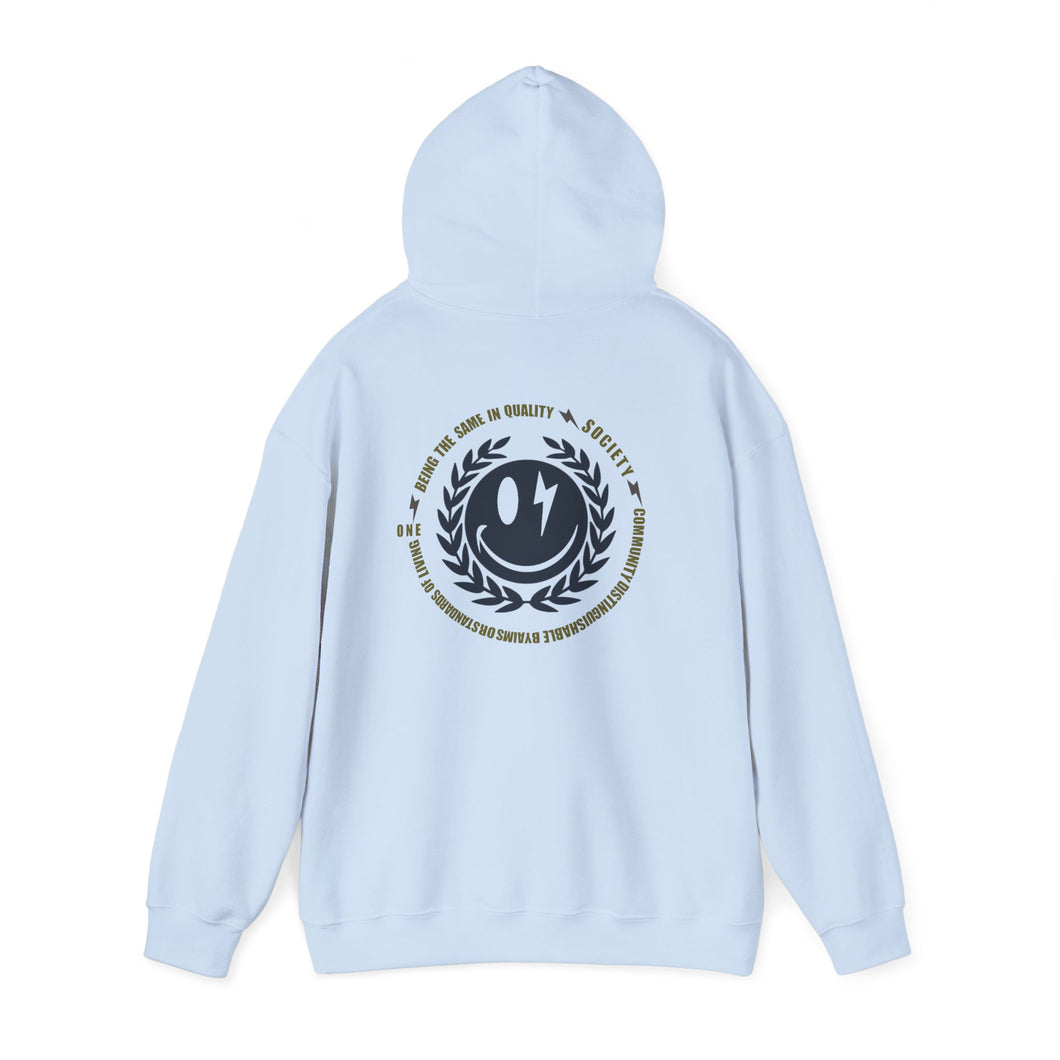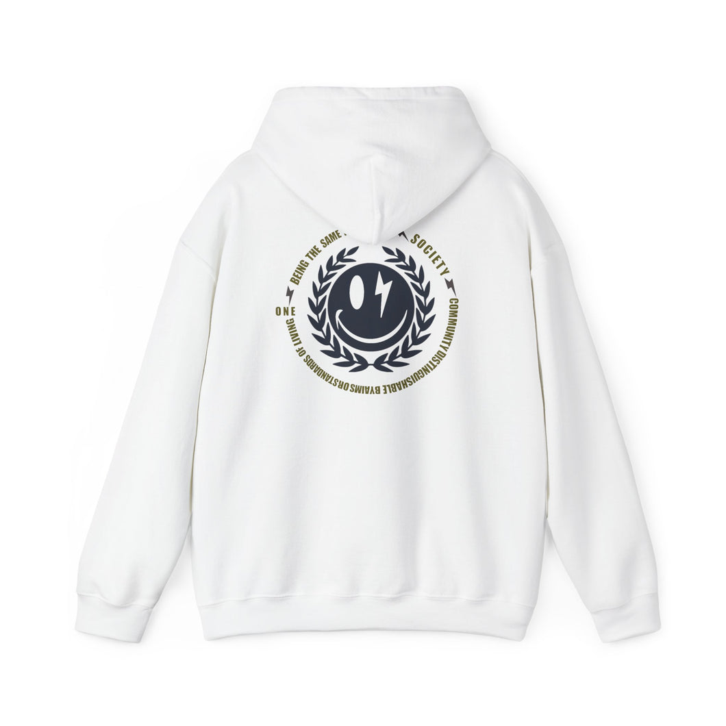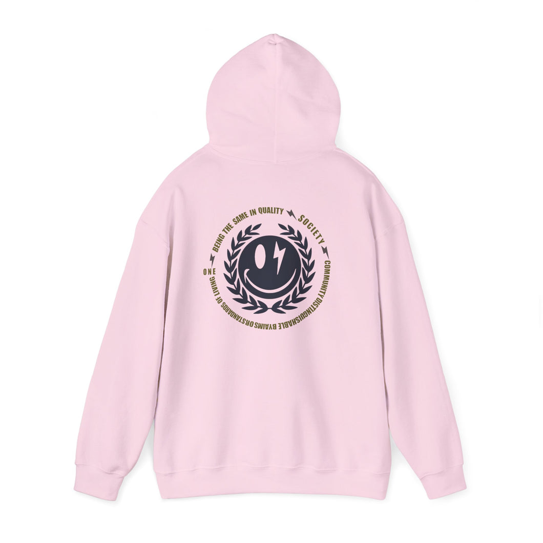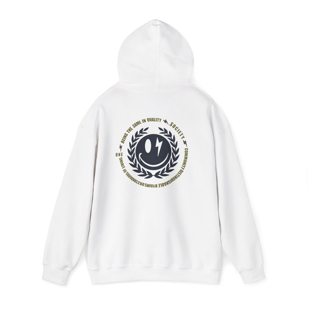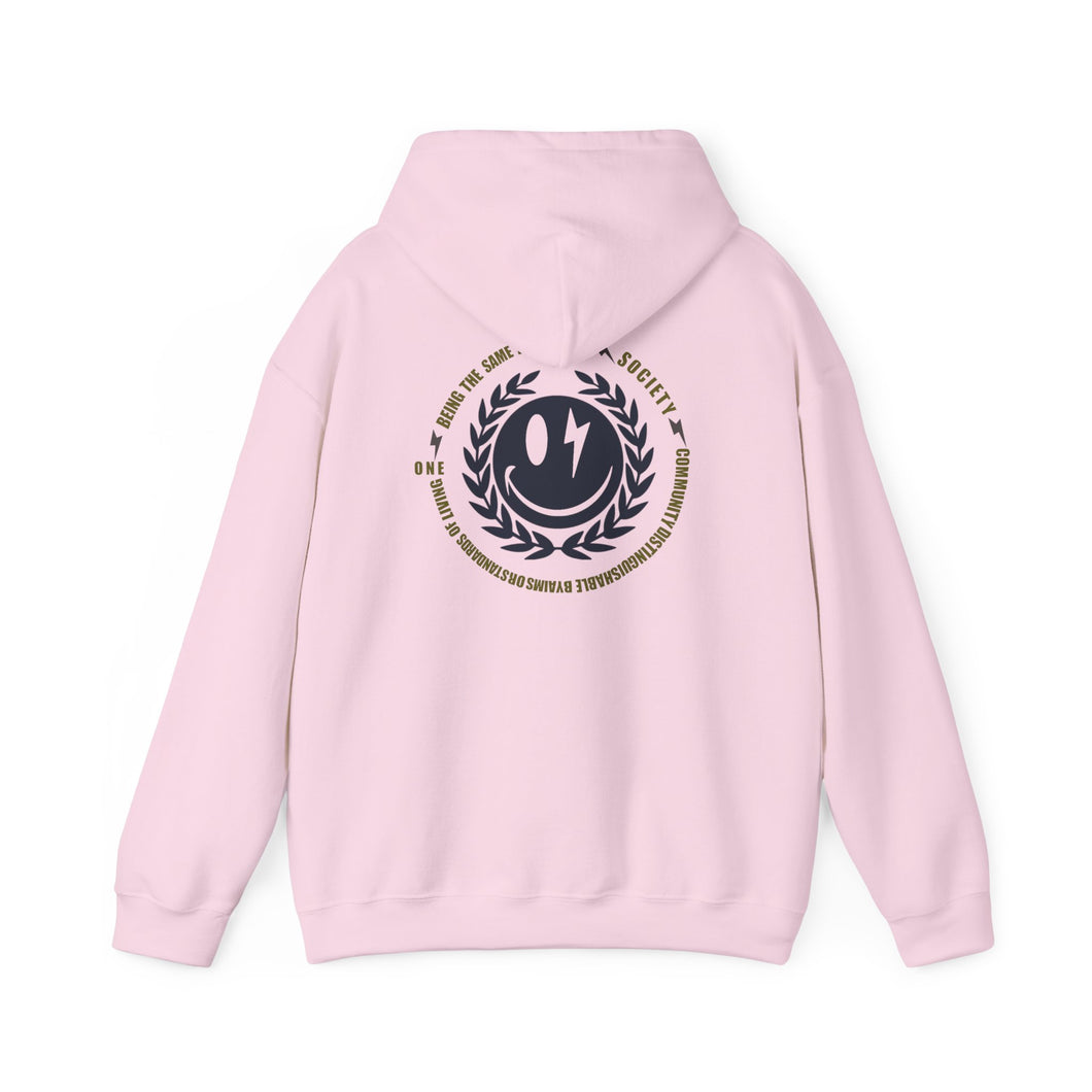 This cozy hoodie blends clean, minimalist styling with subtle emblem detailing for a quiet, confident look. The soft, medium-weight fabric wraps you in warmth on cooler days, while the kangaroo pocket and double-lined hood add practical comfort. On the front, a small laurel-and-text emblem sits over the heart; the back carries a larger circular crest that reads like a badge of belonging — understated but distinct. Wear it for late-night walks, study sessions, or low-key meetups when you want to feel grounded and part of something calm and considered.