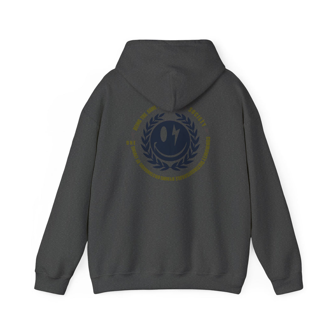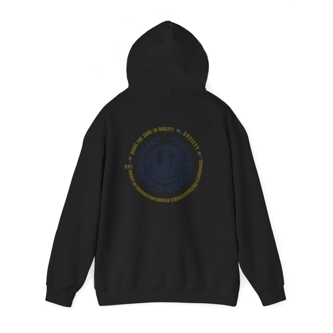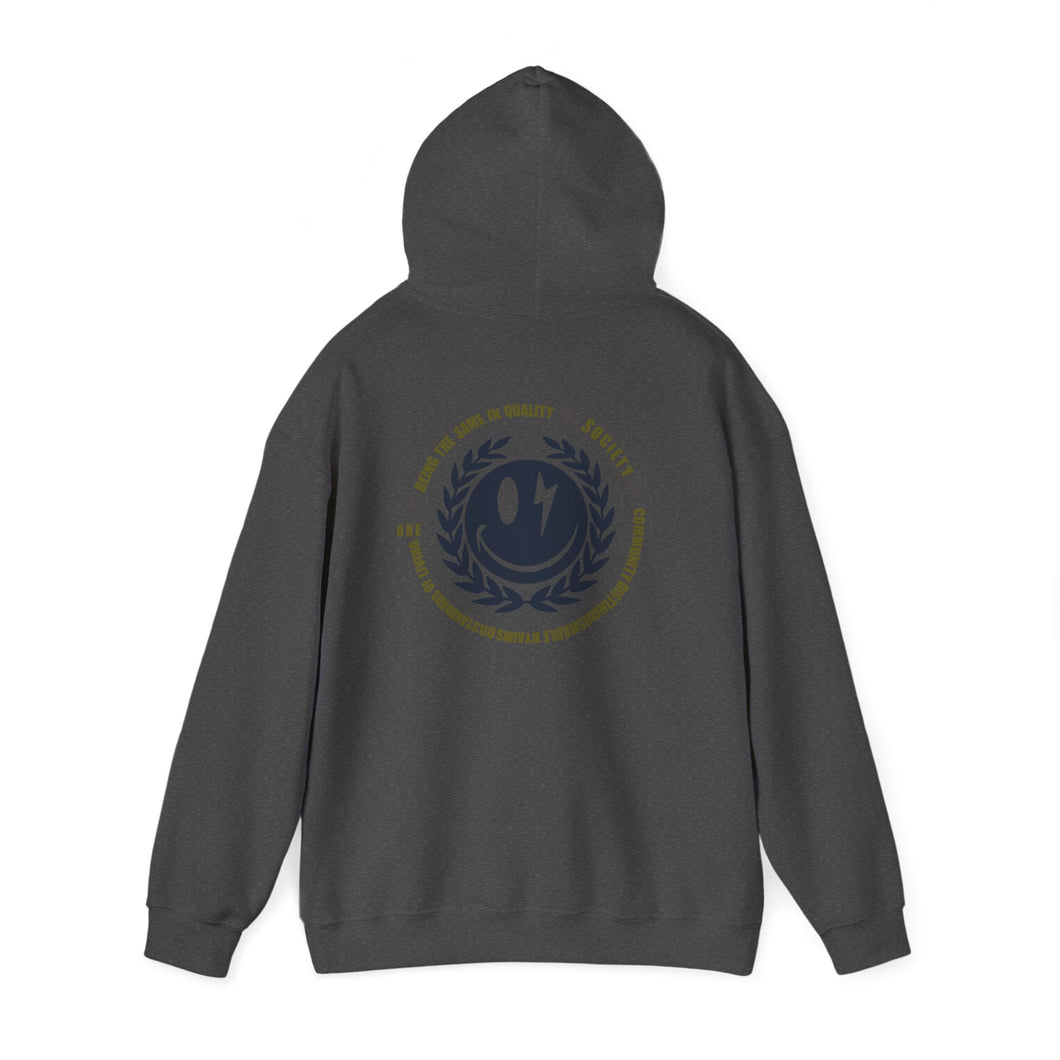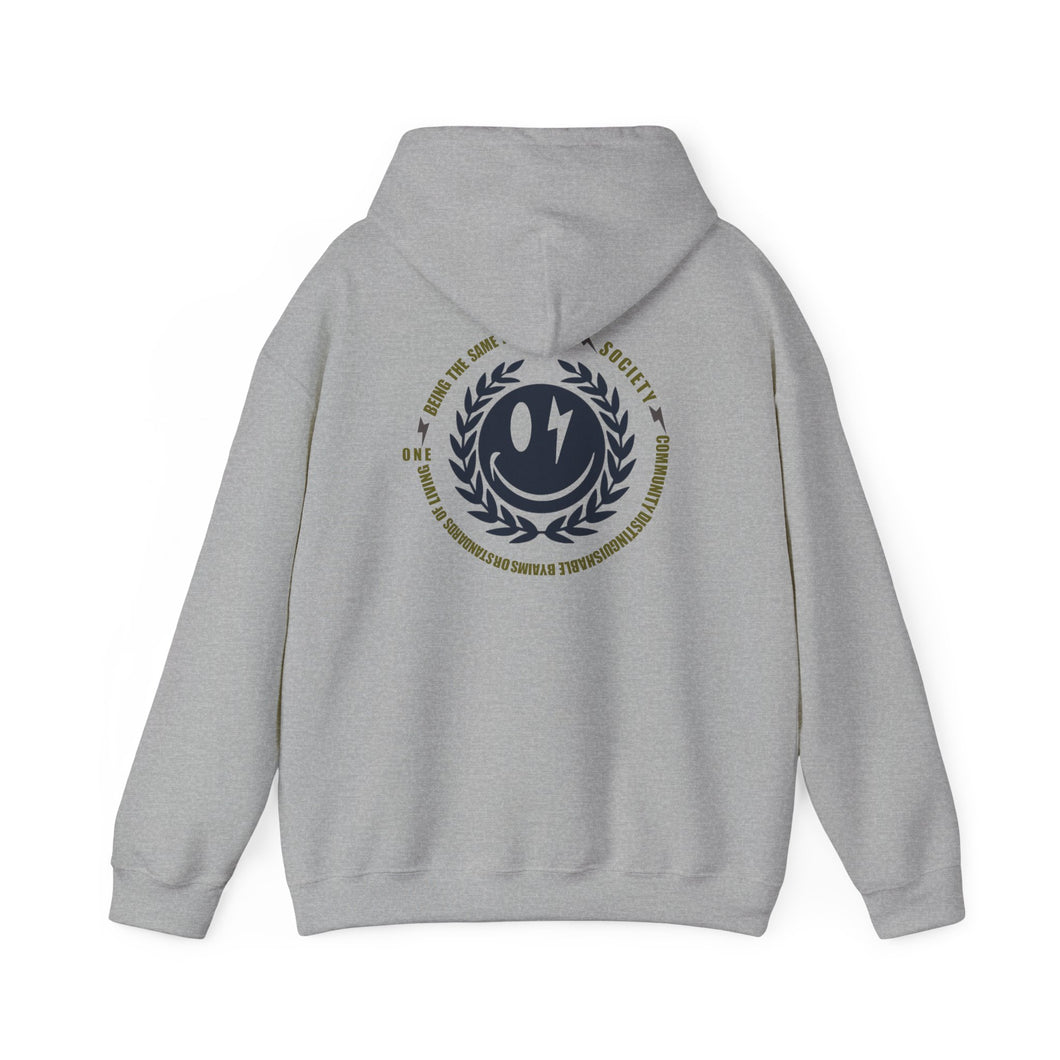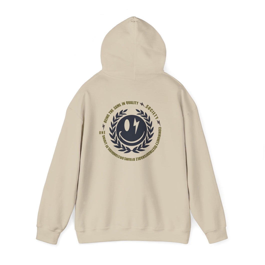 This cozy hoodie blends clean, minimalist styling with subtle emblem detailing for a quiet, confident look. The soft, medium-weight fabric wraps you in warmth on cooler days, while the kangaroo pocket and double-lined hood add practical comfort. On the front, a small laurel-and-text emblem sits over the heart; the back carries a larger circular crest that reads like a badge of belonging — understated but distinct. Wear it for late-night walks, study sessions, or low-key meetups when you want to feel grounded and part of something calm and considered.