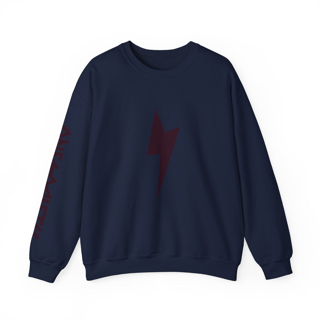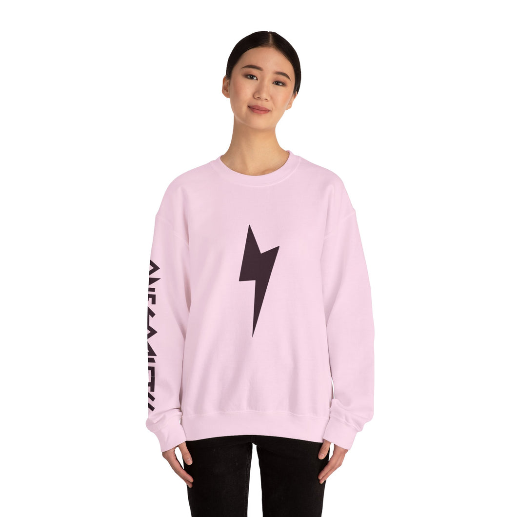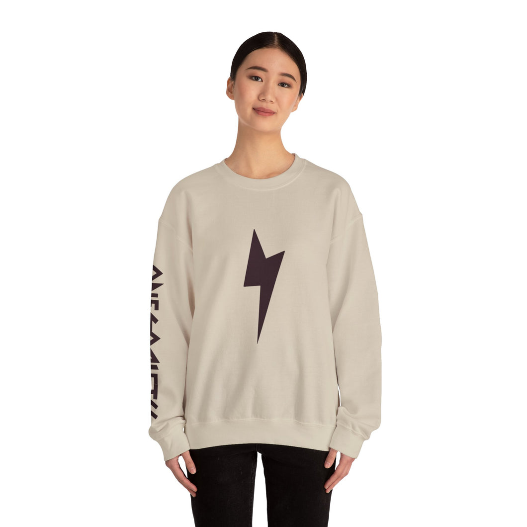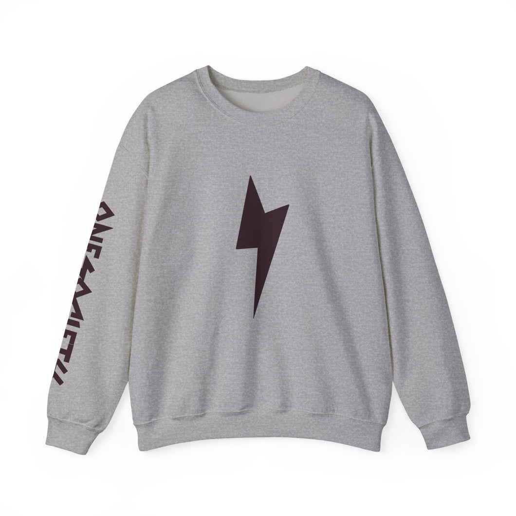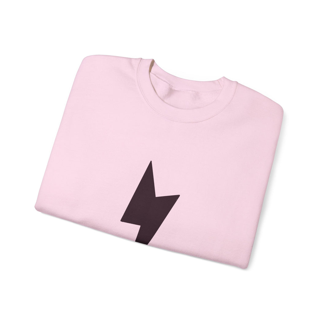 Lightning Bolt Crewneck Sweatshirt — Minimal Graphic Pullover with Sleeve Text